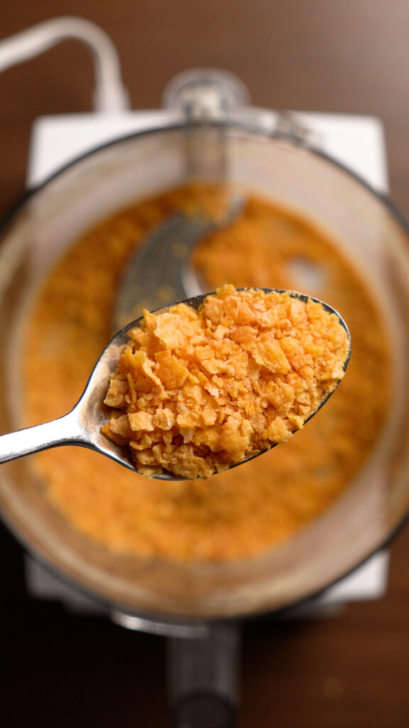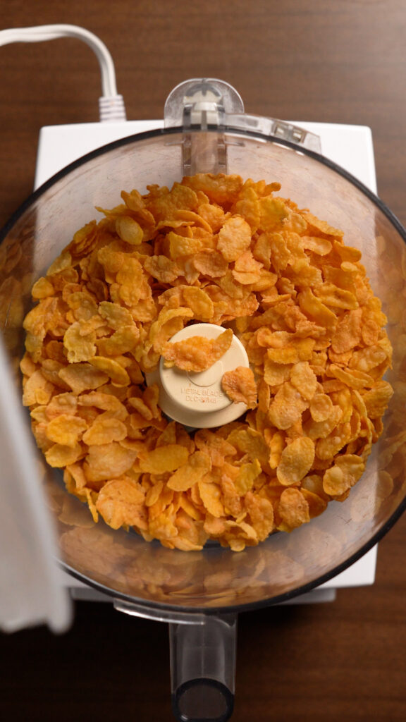 - If you are using Crushed Cornflakes, I recommend pulsing them in a food processor or you can smash them by hand too. Crush them so they are smaller flakes, but don't turn them into a powder.