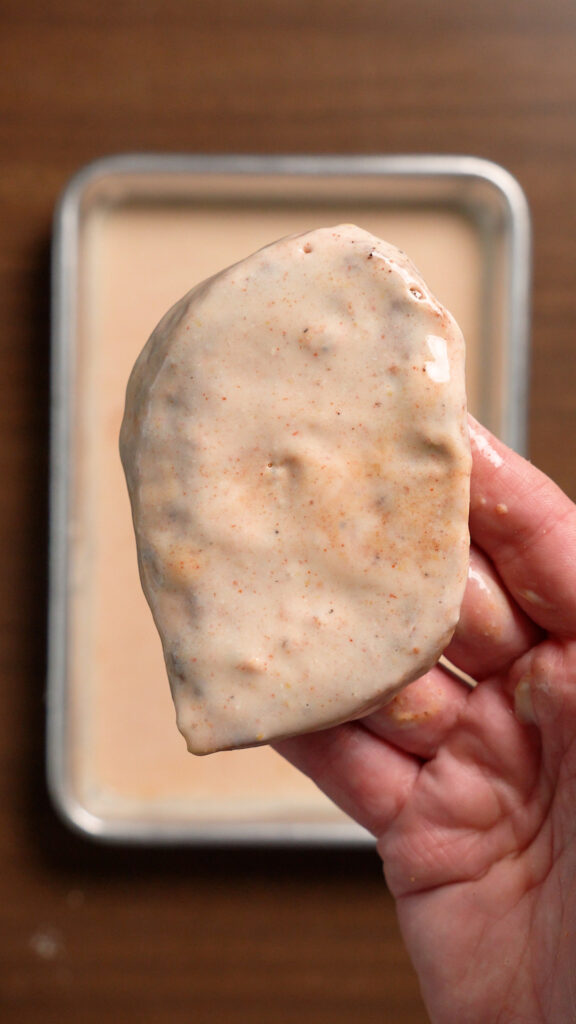- You can whisk the ingredients for the marinade in a bowl but I highly recommend blending for a better emulsion. Dip the filets to coat in the marinade, and marinade the filets for 30 minutes or overnight.