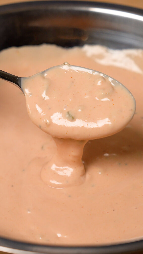 - Vinegar – To balance out some of the sweeter elements and to also thin the sauce out a little. You can even use pickle brine if you wanna make it extra zippy, or hot sauce for some added kick!