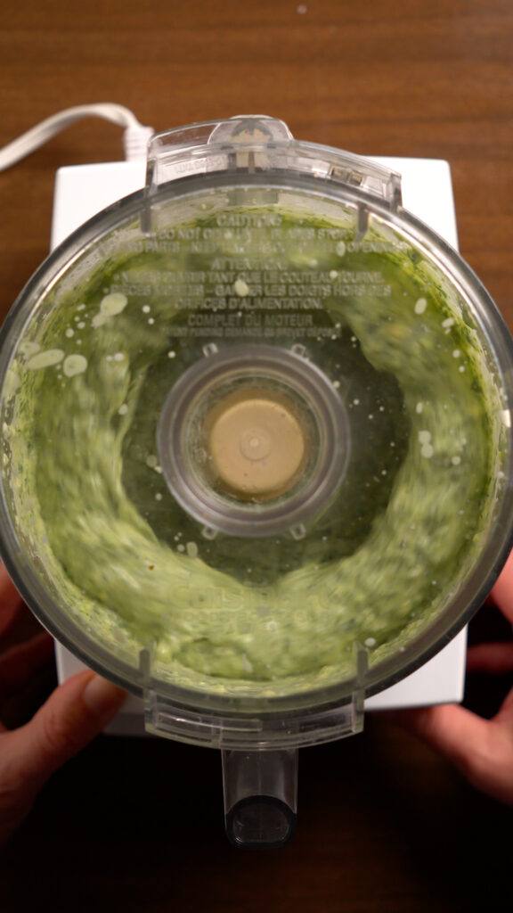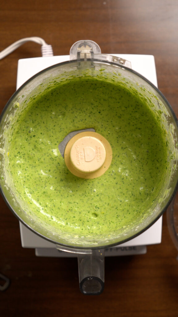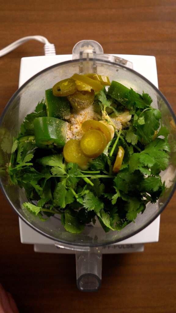 - Then, simply blend all the ingredients together in a food processor or with an immersion blender. You may want to chop up the cilantro a bit if you are using an immersion blender to help it blend. Then, taste and adjust for seasoning.