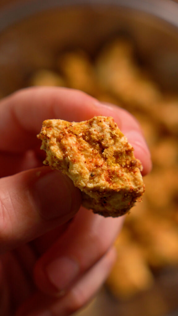 long time vegan here and have made tofu lots of different ways, this was super simple but so delicious. i airfryed for about 15 minutes and they were super crispy. will be going back to this recipe again and again