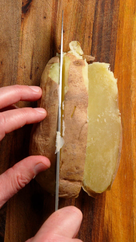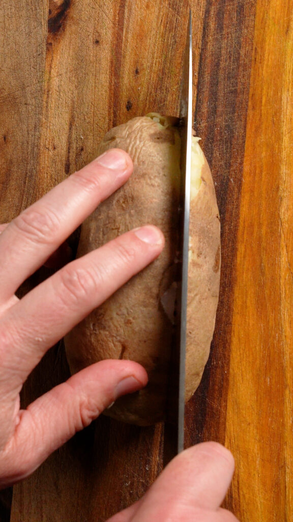 - Potatoes – I’ve only ever used Russet for this recipe, but you should be able to use Yukon Gold if you like too. Keep in mind that smaller sized potatoes will cook faster in the microwave. The potatoes I used were around 350g.