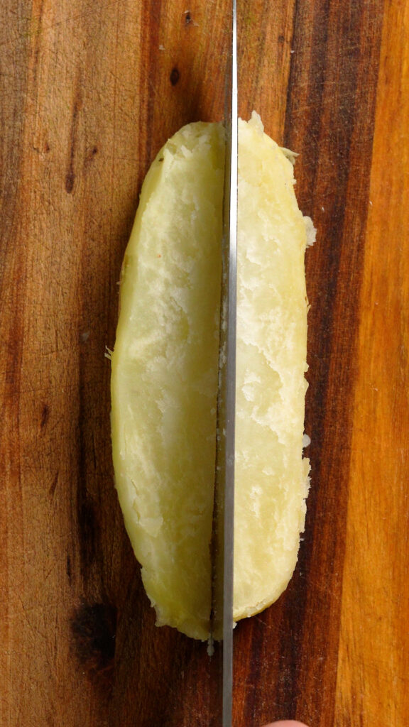 Let them cool for a minute or so, then cut them into thirds long ways.