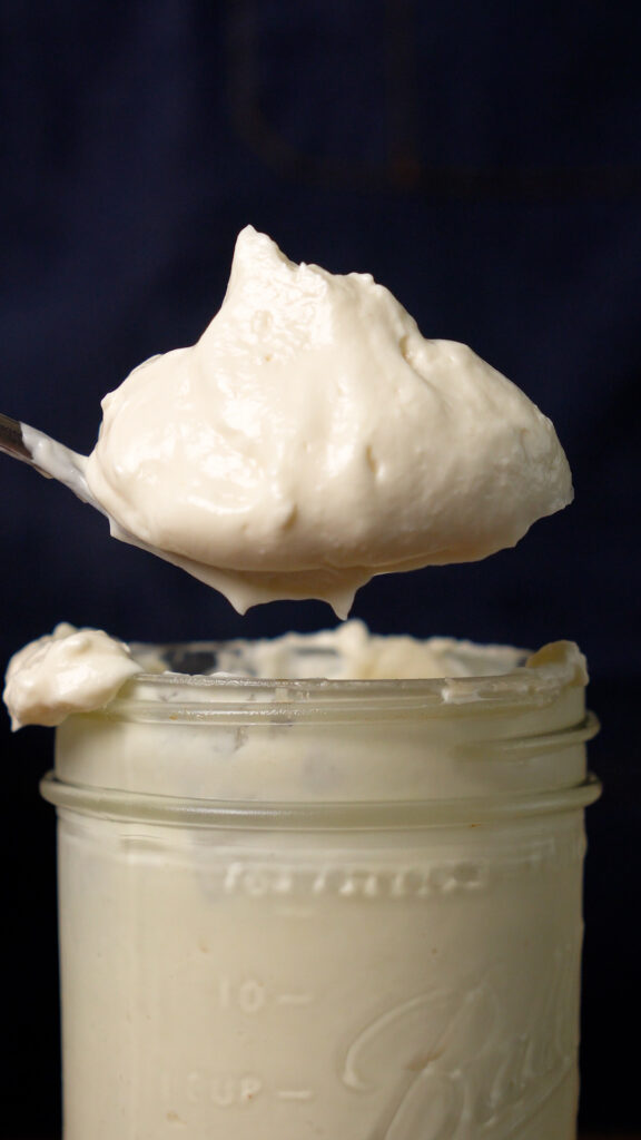 This was my first time making mayo and it was so easy! Excited to make Thee Burger Dudes Hawaiian macaroni salad with this stuff. I’ll never buy mayo at the store again!