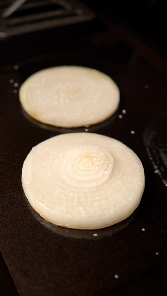 For these, we’re gonna do a whole grilled onion, which will serve as the “buns”