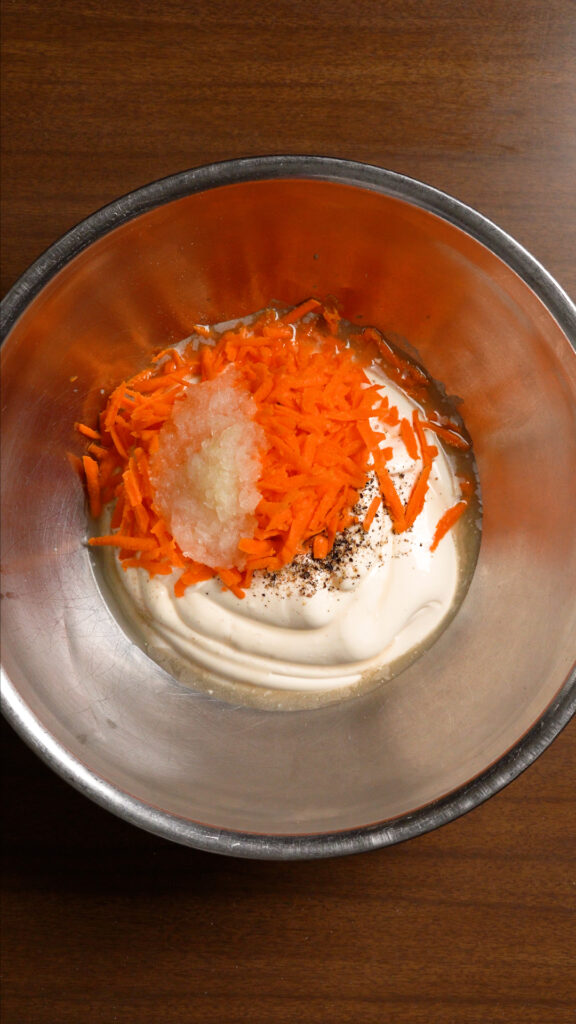 - Fresh Veggies – We’re gonna grate some carrots with the large holes, and some onions for the small ones. Seriously, don’t skip the onions, it makes a big difference!