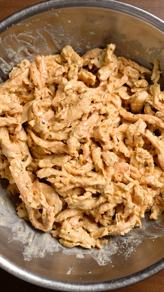Next, you’ll want to drain and squeeze out as much liquid as possible. this is crucial to avoid soggy Soy Curls.