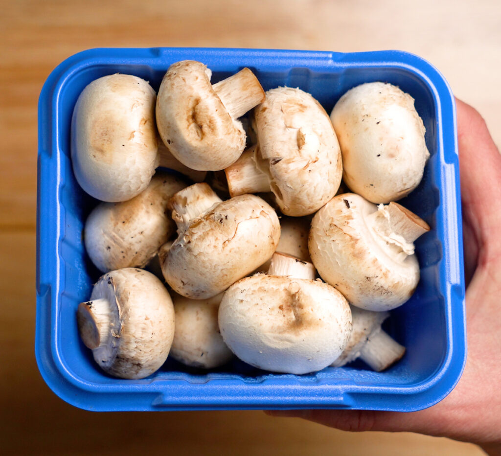 For the mushrooms, use whatever shroom you fancy, but I typically just go for the regular old white mushrooms.