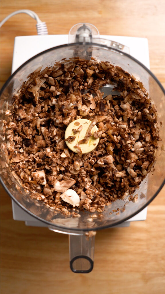 This couldn’t be easier! Chop up your mushrooms. You can do this by hand or with a food processor. Make them as non-uniform as you like. I personally like a variety of sizes in my mushroom mince.