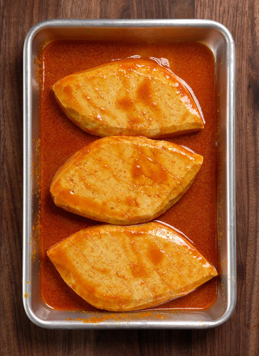 This was amazing! My (omnivore) husband was initially skeptical of the big filets of super firm tofu, but when he dug into the dish, he *loved* them. The marinade and technique of scoring, grilling, and frying the tofu made for a truly phenomenal texture and flavor. We’ll most definitely be doing this again. We liked the marry me sauce a lot as well, but — surprisingly, to us both! — thought the tofu itself was the star of the dish.