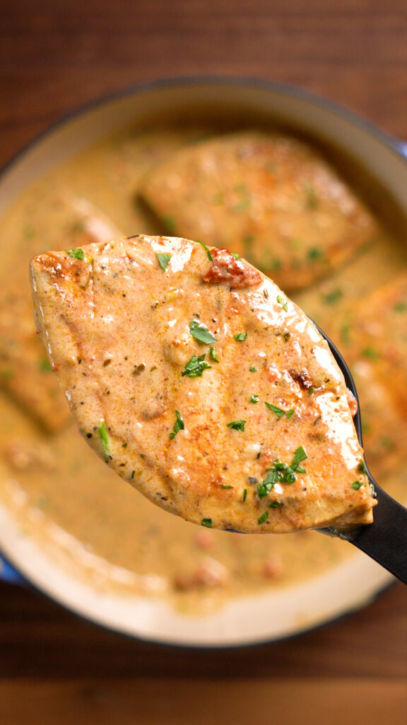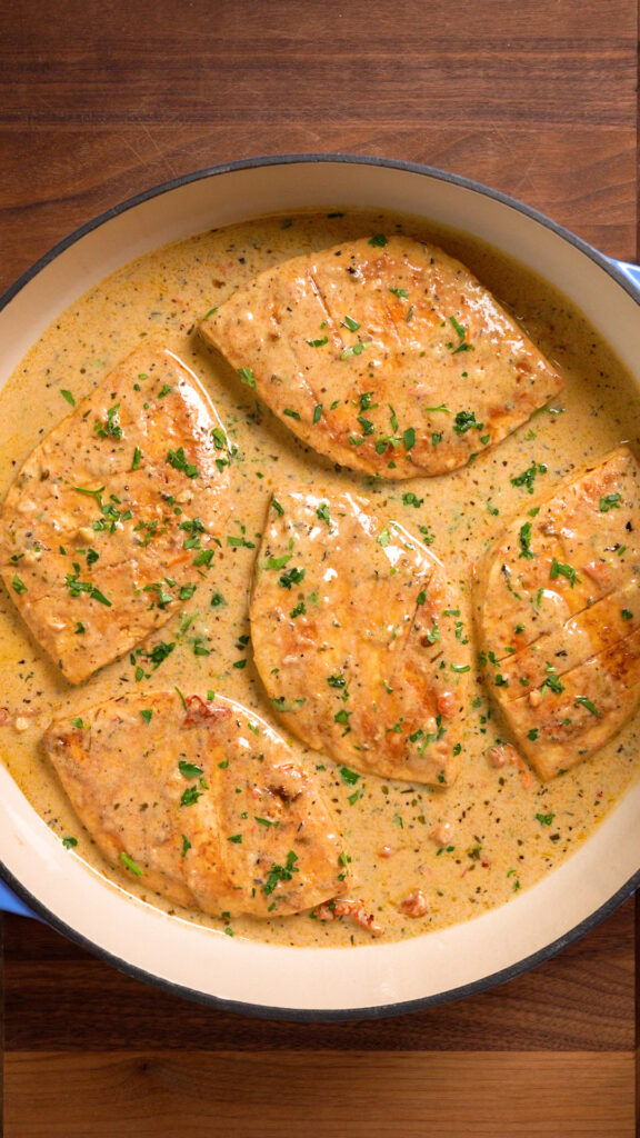 Just made the dish with my partner. I gave it a 7/10 and he gave it a 9/10. We used smoked sun dried tomatoes and I think that’s what brought my score down. Overall it was a solid dish. The marinate was absolutely phenomenal. We debated on whether or not to even fry it with the flour. We settled on frying it which was great too. I recommend this dish to anyone. And using common ingredients was such a win. Awesome stuff!