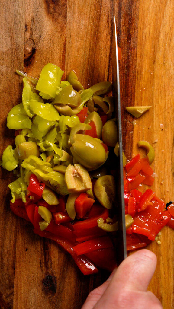 Muffaletta typically has Giardiniera in it, and that can be tough for some folks to find. And making it from scratch can take a while. So I figured I’d make something with less ingredients and see if it was just as good, and in my opinion, it is!