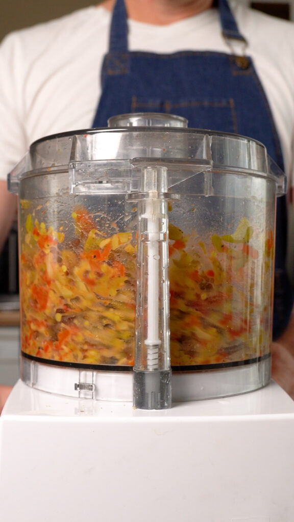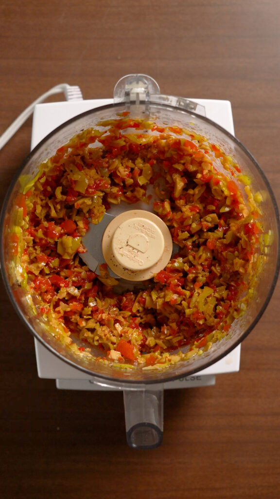 - Add everything to a food processor and pulse until chunky. Don't blend it too much!