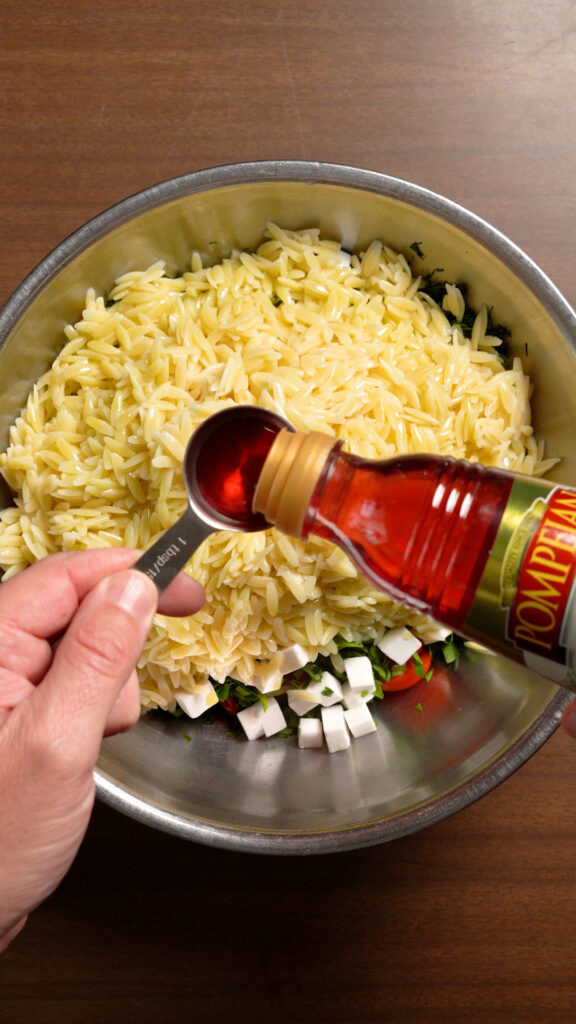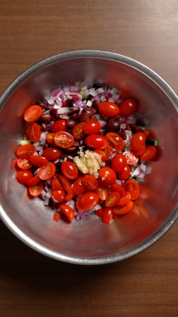- Olive Oil, Red Wine Vinegar, Lemon Juice, Dried Oregano – This will be our dressing!