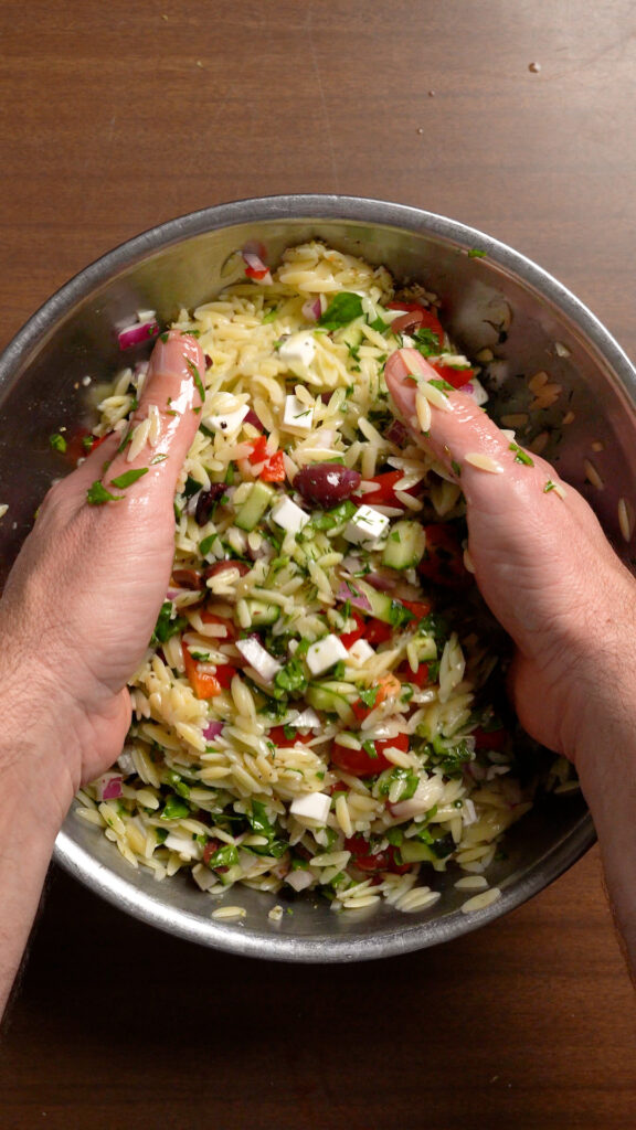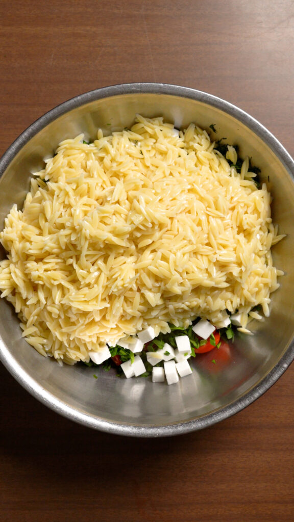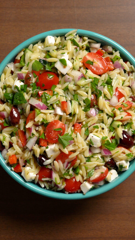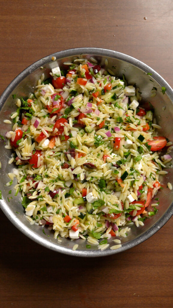 This Orzo Pasta Salad is super dang delicious, loaded with fresh veggies and herbs, and ready in the time it takes to boil pasta!