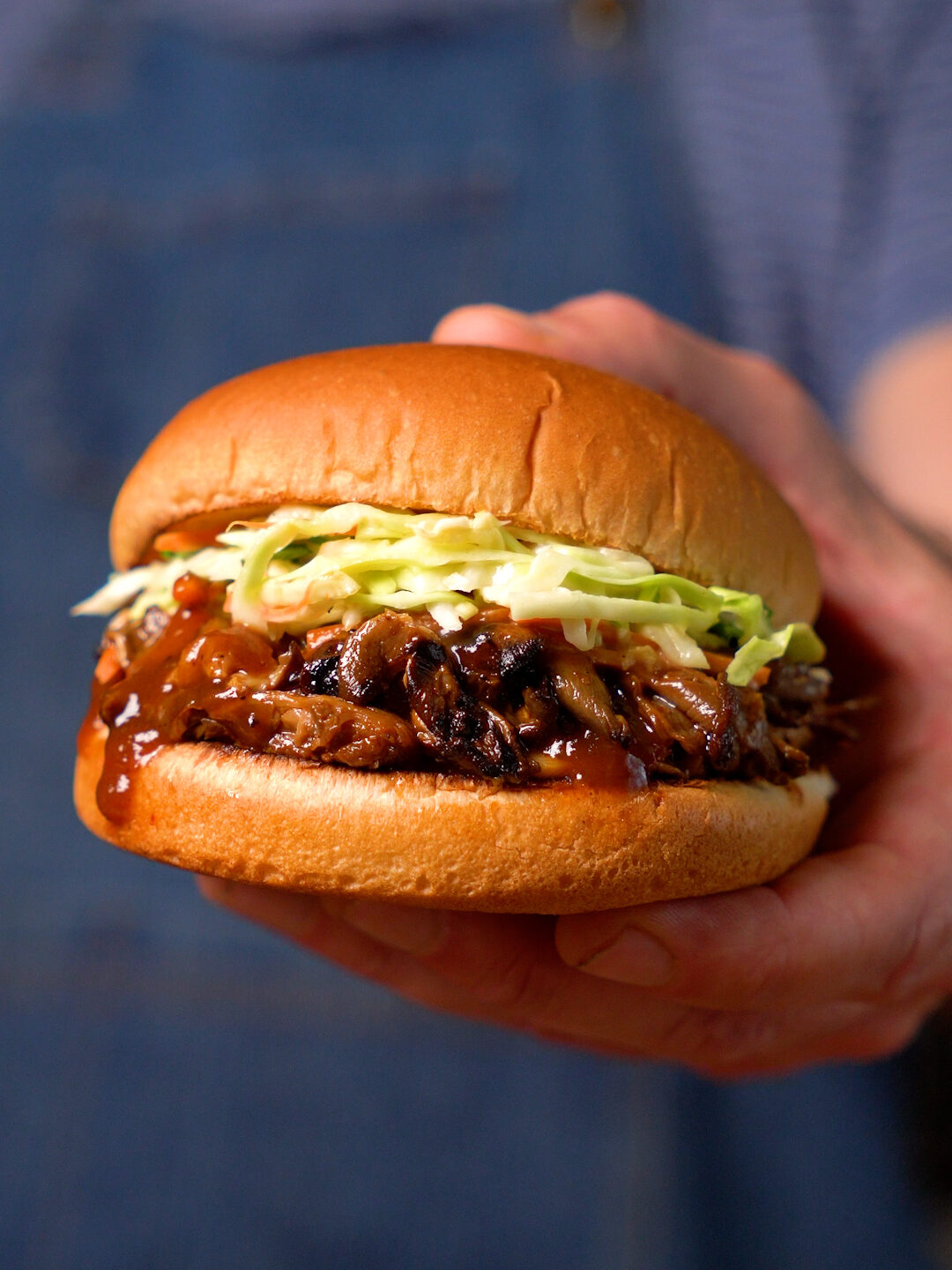 Then you’re done! Let them cool off for a few minutes, and serve however you’d like. They are great on a bun with some BBQ Sauce and Coleslaw, or Chimichurri and Pickled Onions!