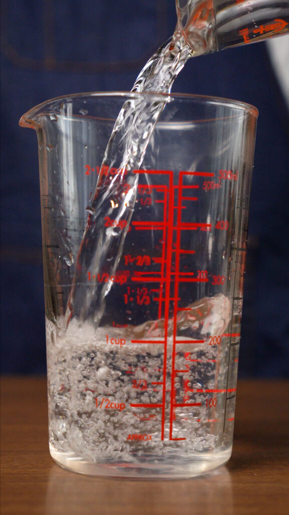 - Add the water, vinegar, salt and sweetener to a glass and whisk until the salt and sugar dissolves. Alternatively you can bring this mixture to a boil if you prefer. Just make sure you let it cool down to room temp before covering with a lid.