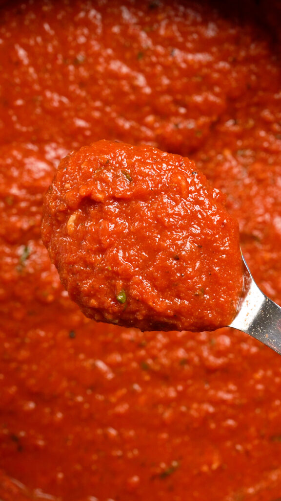 - The Tomatoes – I tested this sauce out with Passata and Crushed Tomatoes. Passata is the smoothest and tastes the best (though you can easily just season the Crushed Tomatoes more too). Crushed Tomatoes are great for a chunkier sauce.