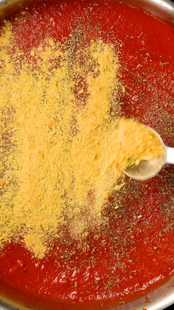 - Seasonings – After that, it’s really up to you how you want to season it. I like to use some Italian Seasoning, Onion Powder and Nutritional Yeast. I’ll also add some Calabrian Chiles for heat, and Mushroom Seasoning for more umami. And then finish with fresh herbs like Basil or Parsley.