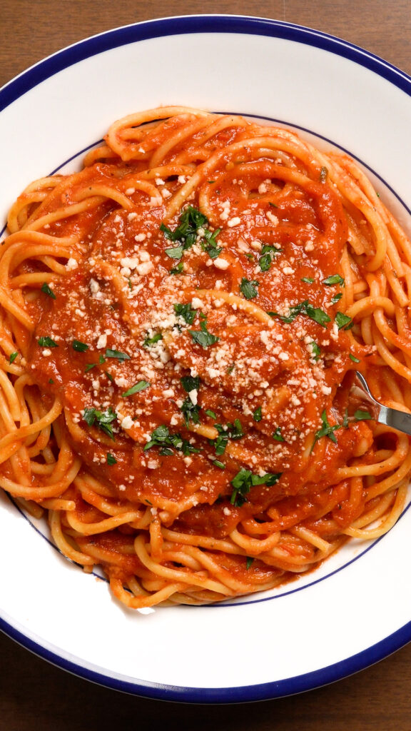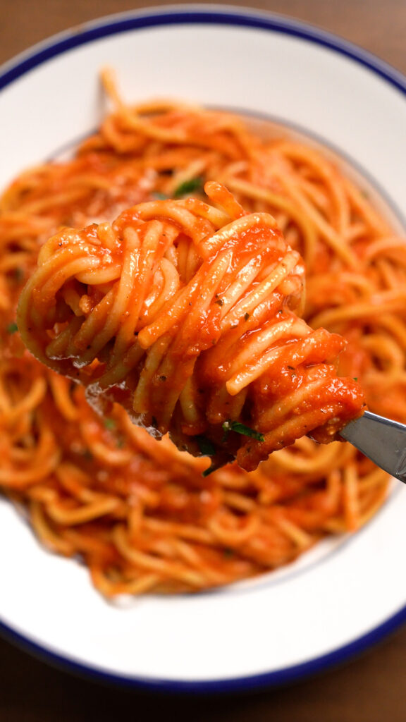 Look, I know it’s easy to just buy a jar of sauce at the store, but ever since I’ve been making this, it’s really hard for me to justify it! This is so much better, and it takes barely any work at all! The only chopping is mincing some garlic, aside from that it’s just throwing stuff in a pan!