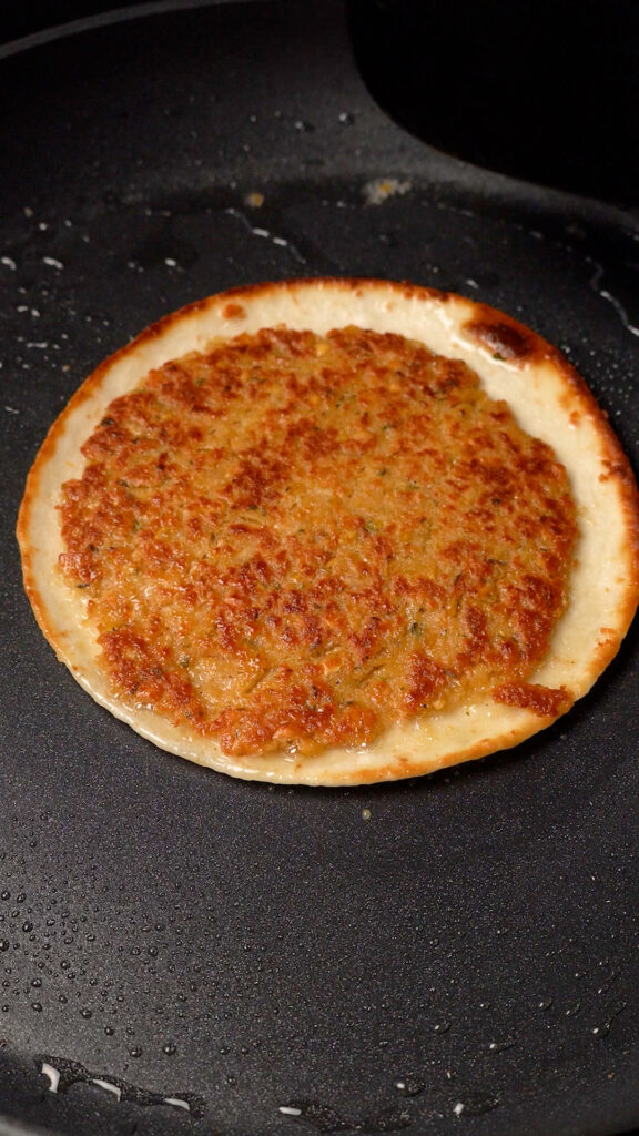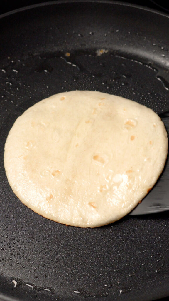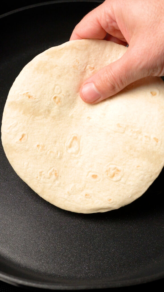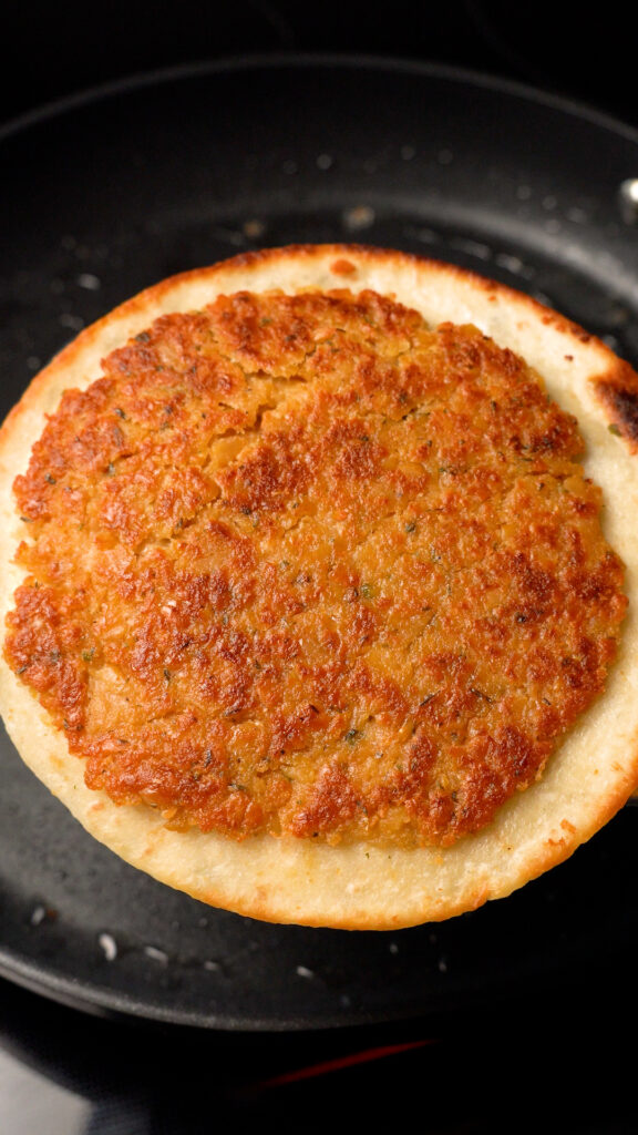 - Cook for 3 – 5 minutes or until the chickpea patty is nicely browned. You can flip and cook the tortilla to your liking as well if you’d like it to get browned and crispy.