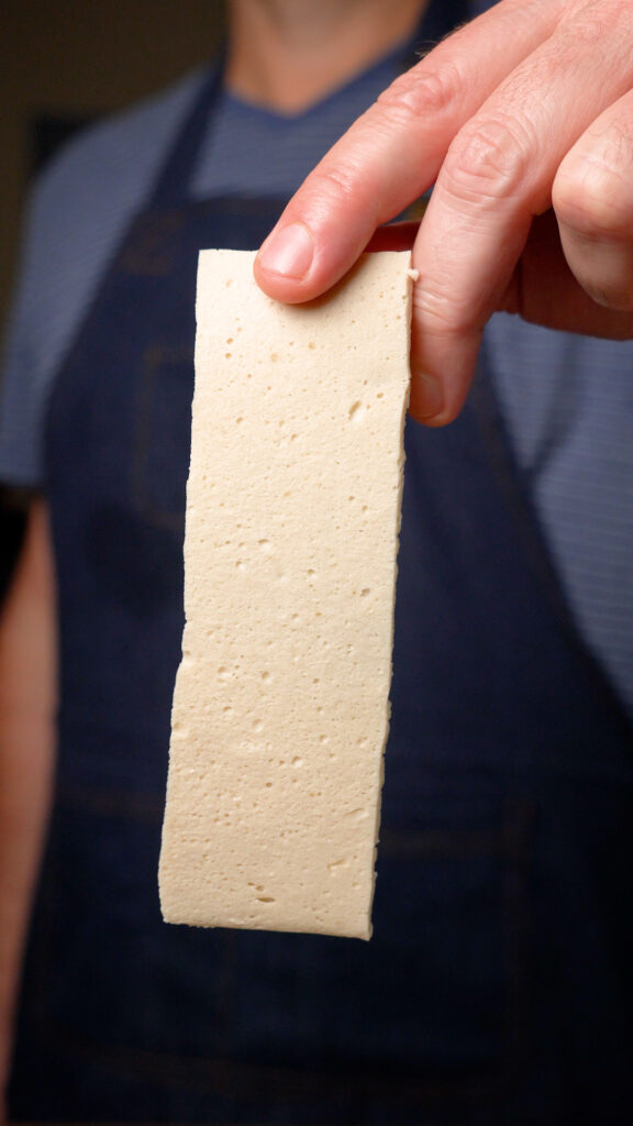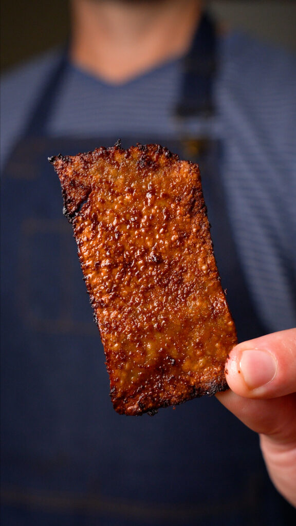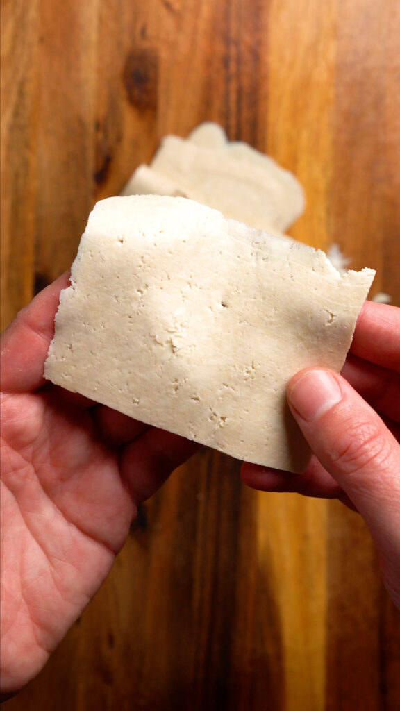 This. Was. Amazing. Goblin failure here too, I think we ate half of it before it made to the fridge, ha. One question, we used the super firm (not the 99 Ranch kind) but it was the same brand you showed as an alternate and of course it was vacuum sealed. We used it straight from the fridge but more often than not, it crumbled and broke up as we tried dipping it. I tried adjusting the thickness when cutting but thick or thin, a lot of them broke up, and we didn’t get that perfect “bacon looking” sizes. Any suggestions?
