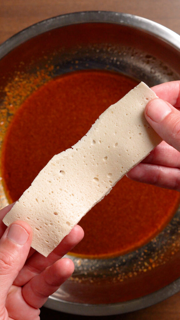 In order to get our Tofu Bacon CRISPY, we want to minimize the water content as much as possible. I made this recipe with two kinds of tofu, both of them are vacuum packed and don’t require any pressing since they are very low in water content.
