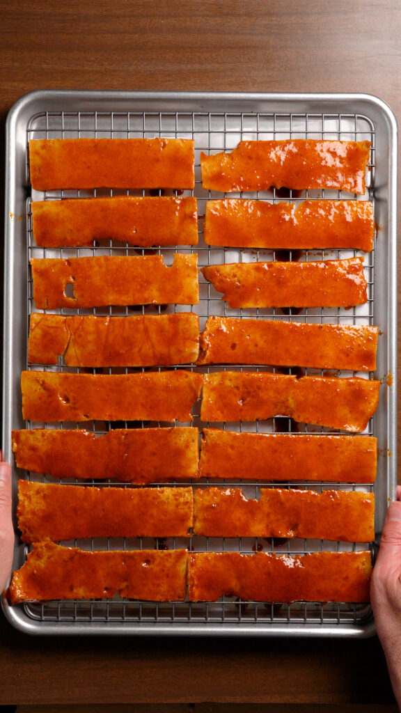 Baking is good if you want to make a bunch of Tofu Bacon at one time.