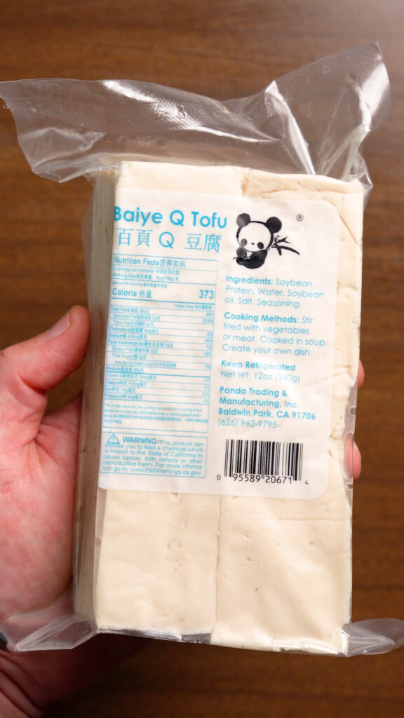 The first is Baiye Style Tofu. I found this at my local 99 Ranch. Initially I got it because it’s longer than most blocks of tofu and would be the perfect size for bacon.