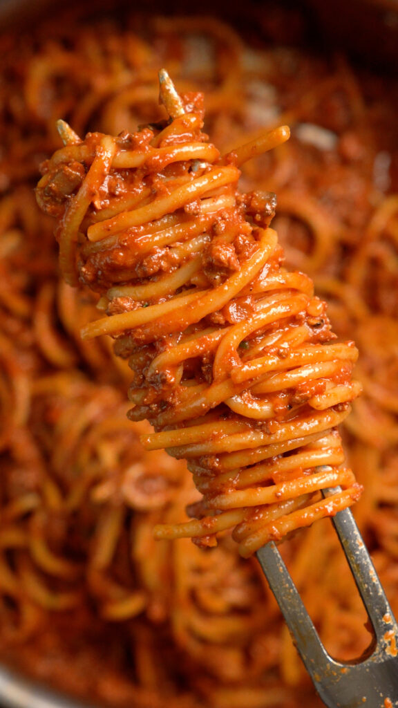 You can also make the sauce and store it in the fridge for 3 – 5 days and just cook 1 – 2 servings of pasta at a time and use it throughout the week if you’re only 1 – 2 people. This way the pasta will be fresher, either way it’s good for meal prepping!