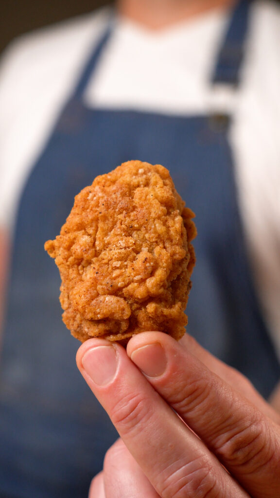 - Fry a test nugget to test the seasoning and adjust as needed.