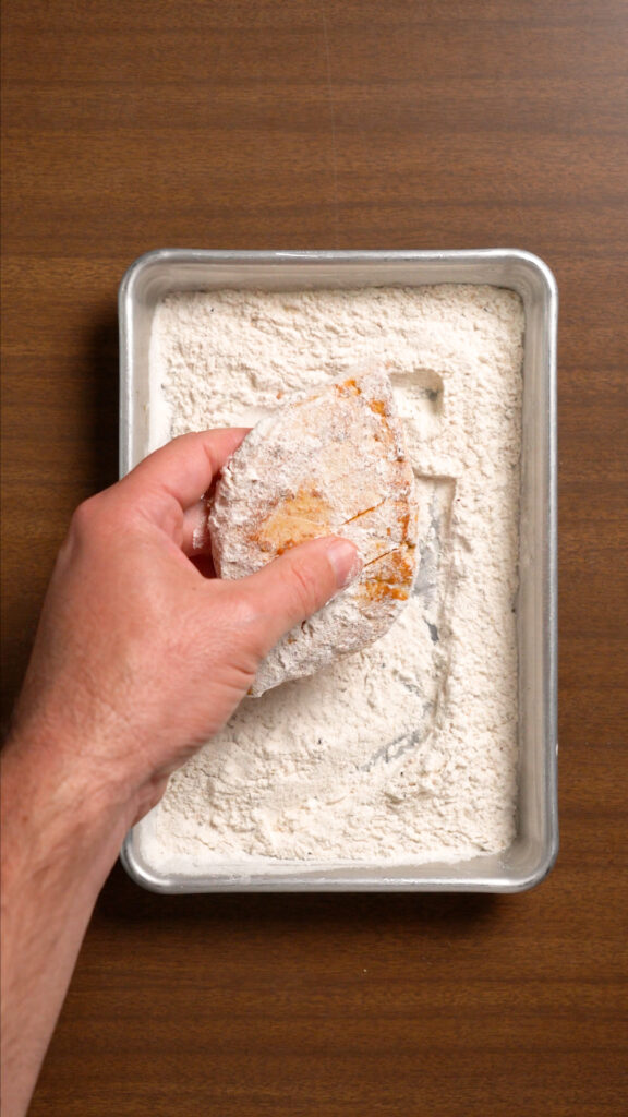 I’m trying this approach today. I love that there’s baking powder in the dredging flour. That drastically improved my breading, combined with improved techniques.