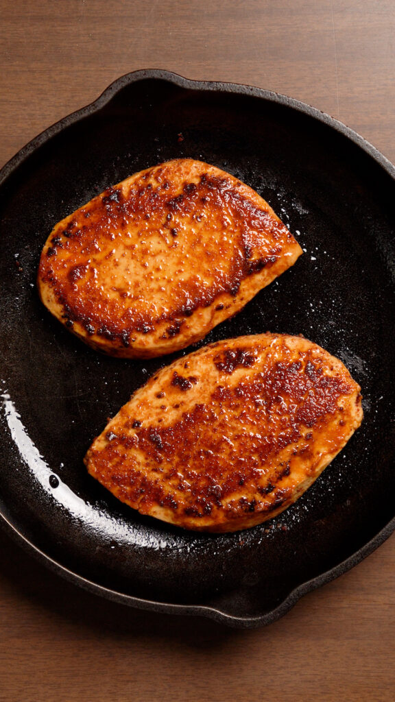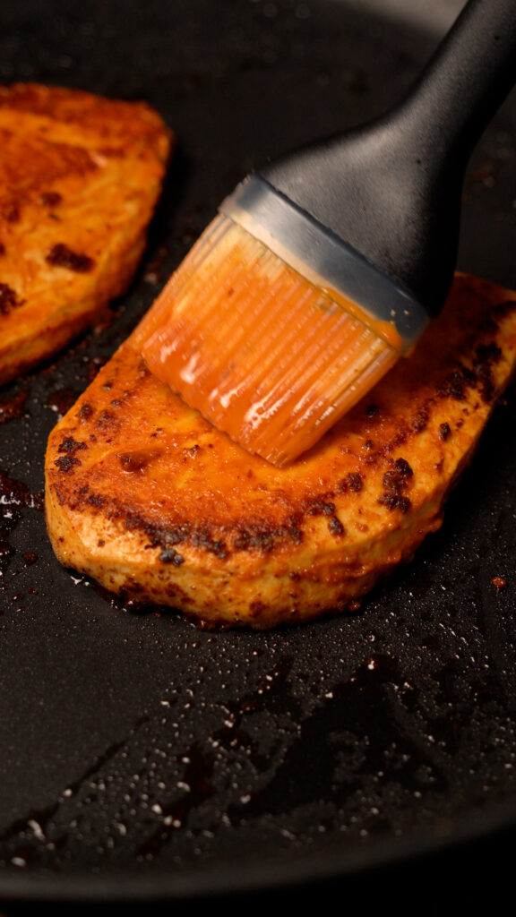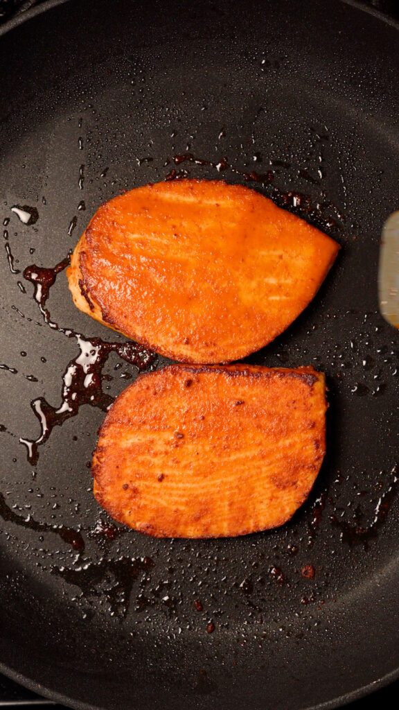 Get a pan up to medium high heat, add a little oil and then grill the filets for about 2-3 minutes per side. I recommend brushing the leftover marinade before and after you flip them. Feel free to flip as many times as you like, just don’t burn ’em!