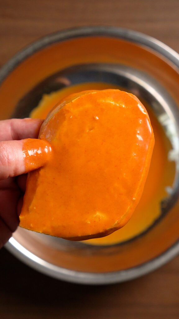 - Vegan Buttermilk – use unsweetened plant milk along with some apple cider vinegar, hot sauce and then a little flour to help get it nice and thick so it sticks to the fillets.