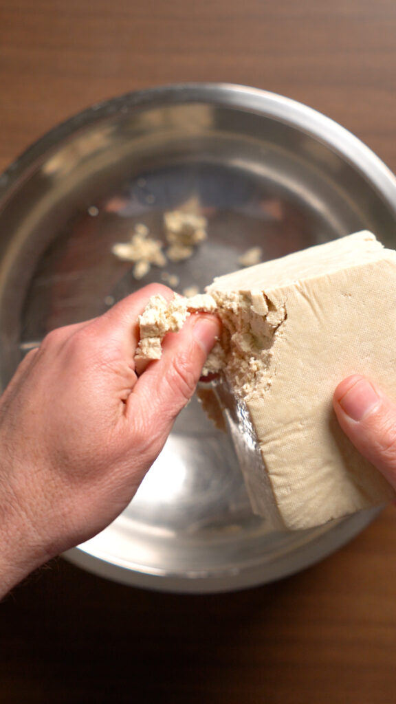 For this vegan ground beef recipe, I highly recommend Super Firm tofu that’s vacuum sealed, and doesn’t need pressing.