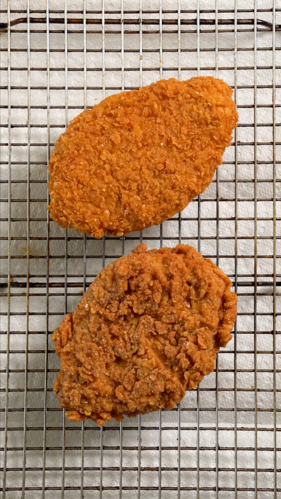- Let the chick’n rest on a Wire Rack after frying to prevent soggy chick’n.