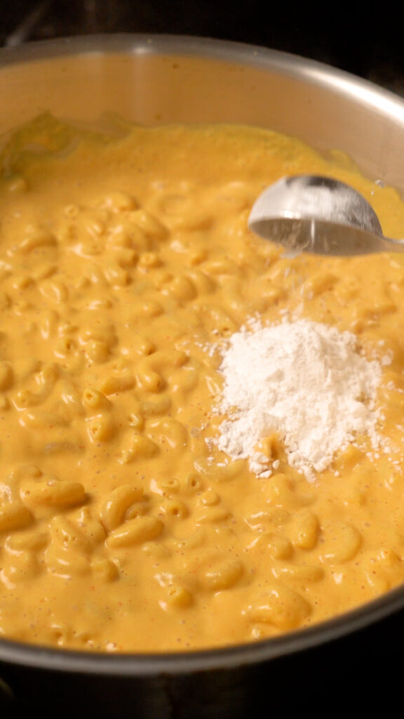 - Pasta Water – Likewise, this will work in tandem with the tapioca starch to make this creamier but still nice and thick!