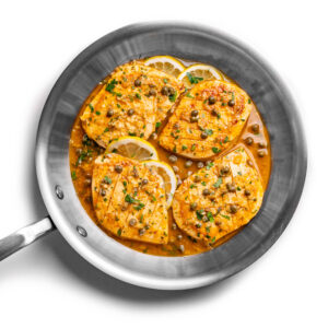 Instead of chicken we’ll be using tofu, specifically my Grilled Tofu Chicken recipe. That recipe on its own is super flavorful, but when we add the amazing caper lemon butter sauce, it really takes it over the top!