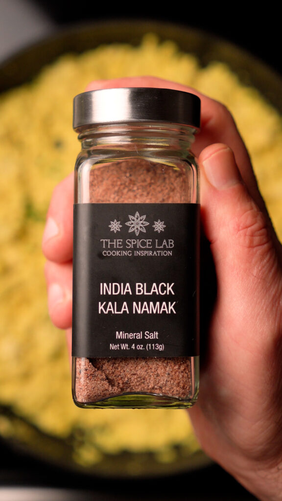 - Black Salt (aka Kala Namak) – The “eggy” seasoning! It truly makes this dish taste like eggs. Just be sure to sprinkle it on at the end as cooking it for too long will dilute the taste.
