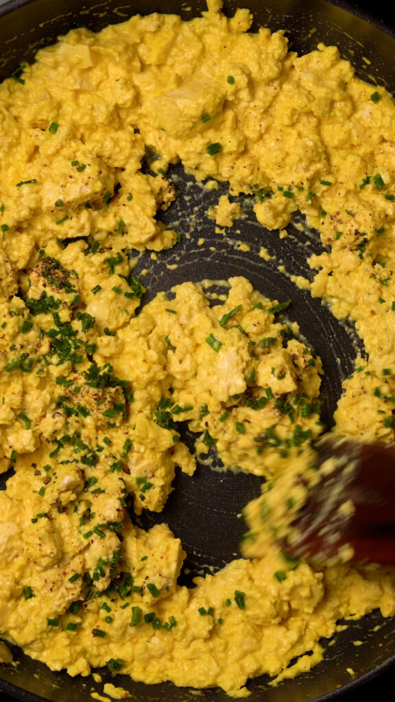 I’ve made this at least 10 times – It’s honestly so addictive! It’s unbelievably good, by far the best tofu scramble I’ve ever tried! I seriously think that you are a genius! I’ve tried SO many of your recipes, grilled tofu, gyros, donor kebab, butter tofu (insanely good!), bolognese, veggie burger, tofu ground and many more and they are all exceptional! I can’t imagine how long you must spend to perfect a recipe to make them as good as this but thank you so much! My boyfriend was very against vegan food and just thought it wouldn’t taste as good but I started making some meals for him with your recipes and he couldn’t believe how good it was, I bet him he couldn’t go vegan for a week and so he tried it. He said he had never felt better, he had so much more energy, he said it was the best he ever felt in his life, that he didn’t even realise it was possible to feel this good. He hasn’t eaten meat, dairy or eggs in the last 11 months, it makes me happier that you could ever know and it’s all thanks to you! Had it not been for your recipes he never would have tried it and now he will never look back. His absolute favourites are your orange tofu and tofu fried chicken. From the bottom of my heart – Thank you so much for everything you do, for sharing your recipes with us and for what you do for animals!