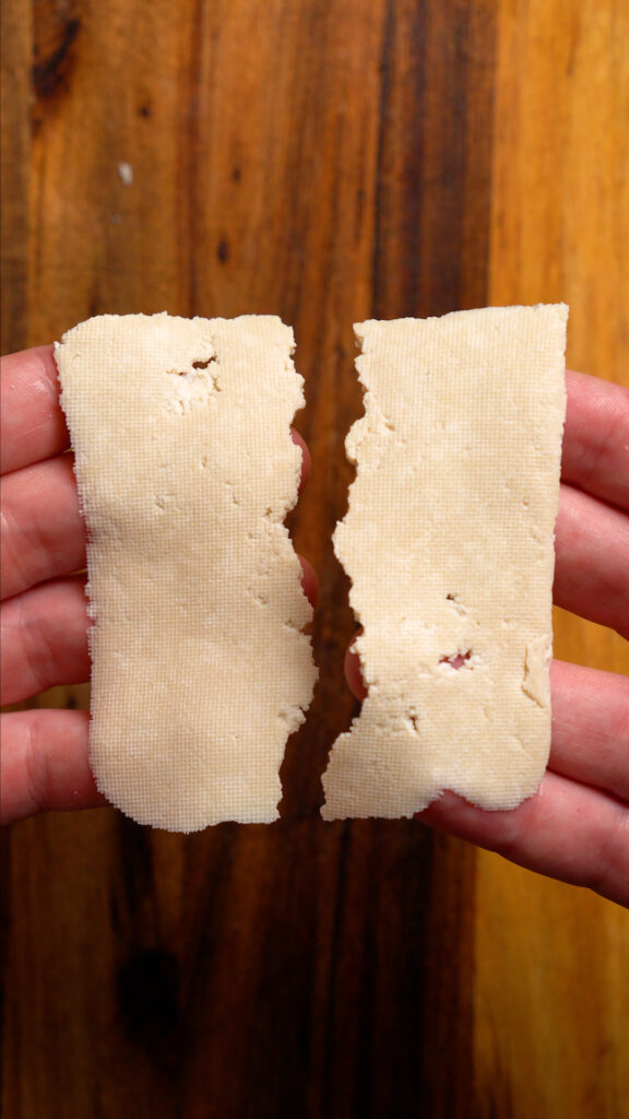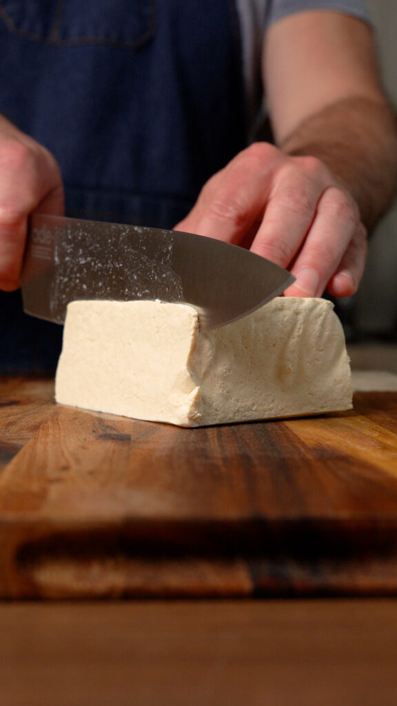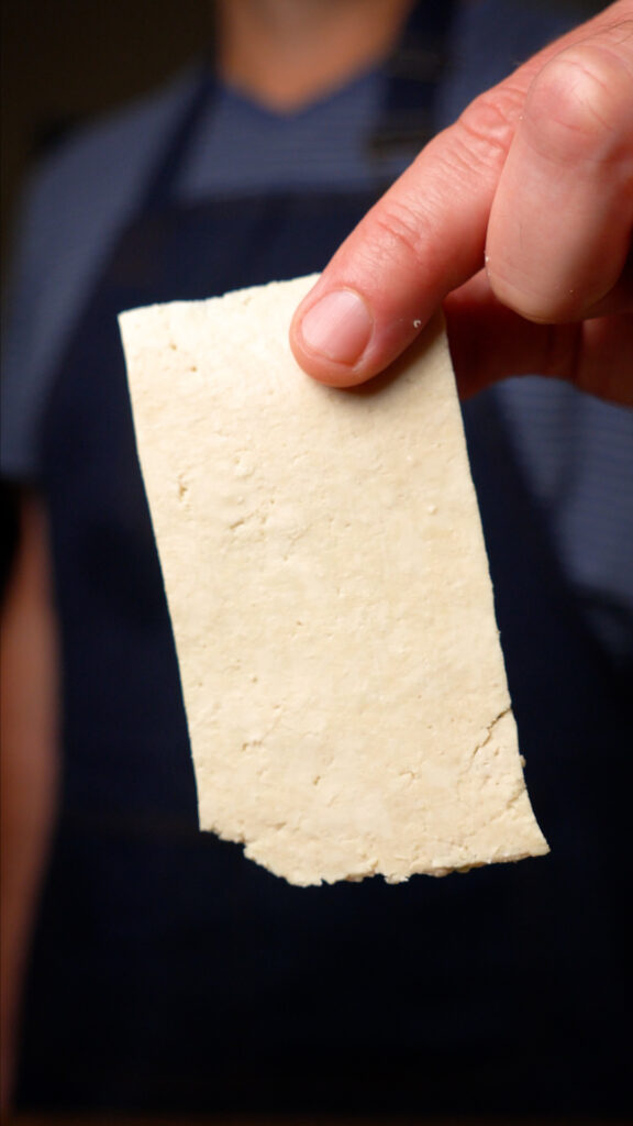 - I highly recommend using Super Firm Tofu that’s vacuum sealed, you will get the best results with it! Take it out of the package, pat it dry and then slice it thin with a knife, mandoline or veggie peeler.