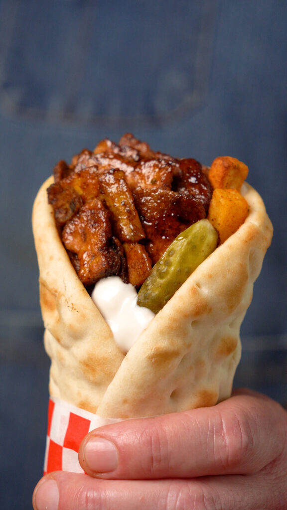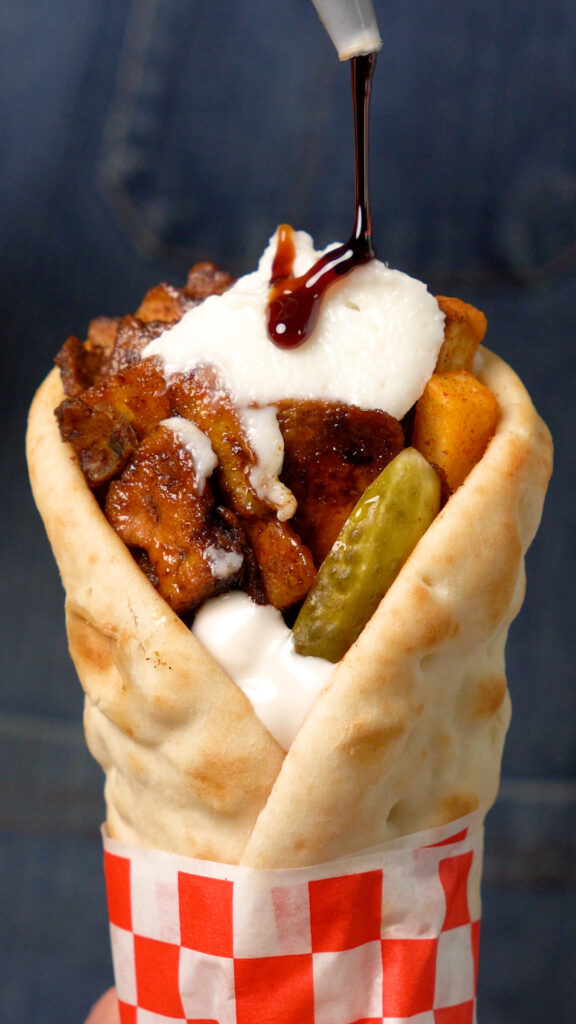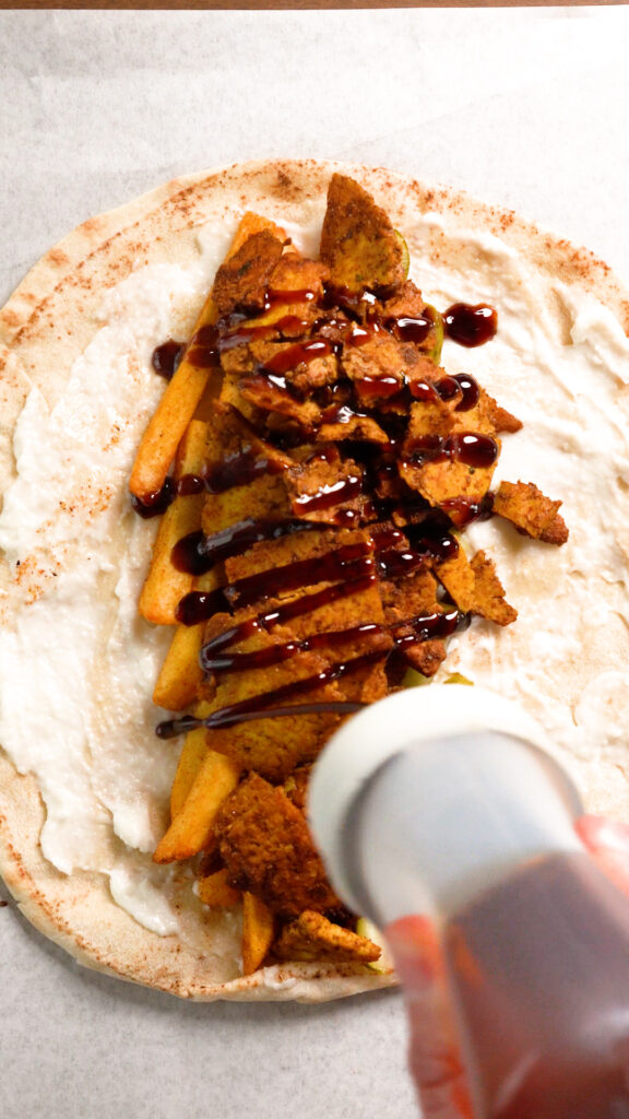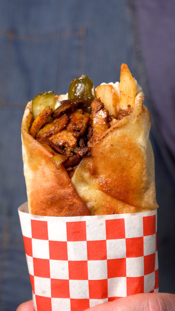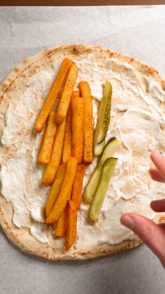 And of course, you can make your Shawarma however you like, but I’ll be sticking to the classic style of Pickles, Fries, Toum and Pomegranate Molasses for mine!
