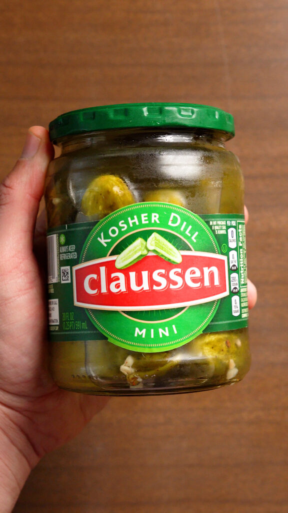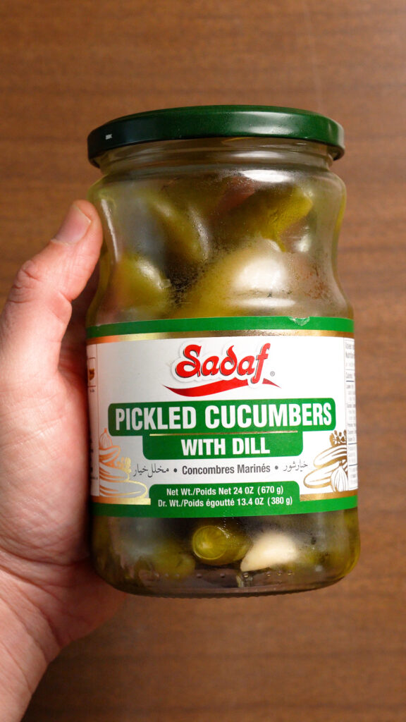 If you have a West Asian market near you, grab some of their dill pickles. Otherwise, some Mini Dill Pickles from a standard big box store will work too!