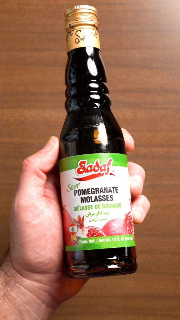 This is optional, but if you can get your hands on this stuff it’s so good in this! It’s sweet and sour and cuts through the richness of the shawarma and toum!