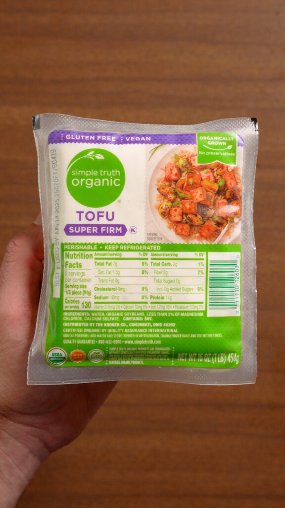- Tofu – I strongly recommend using Super Firm Tofu, the kind that’s vacuum packed and doesn’t require pressing. If you can only find Extra Firm, you can use that, just make sure to press it for at least 30 minutes.