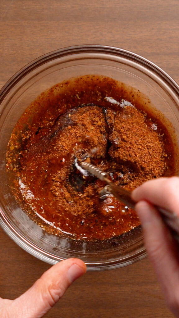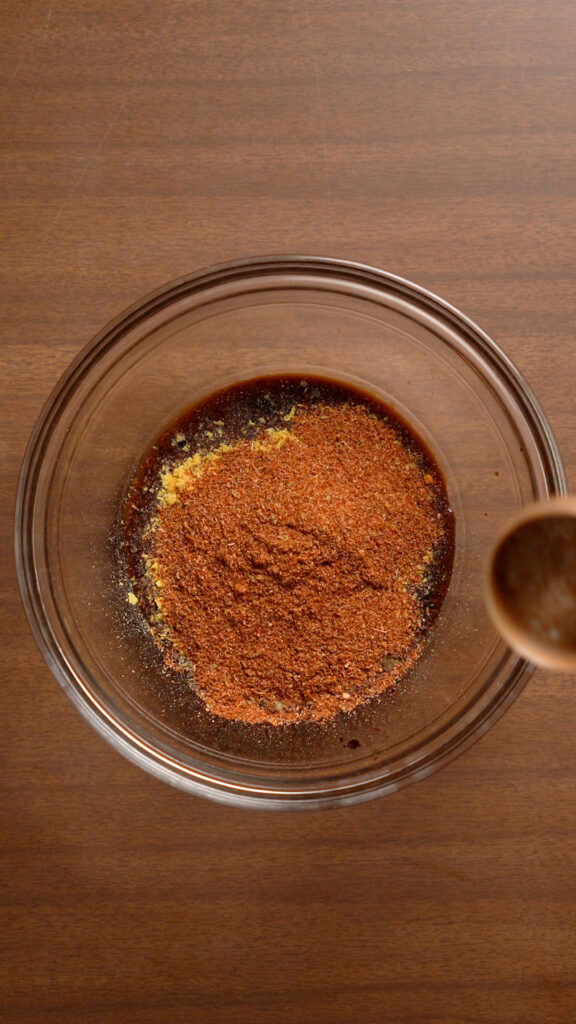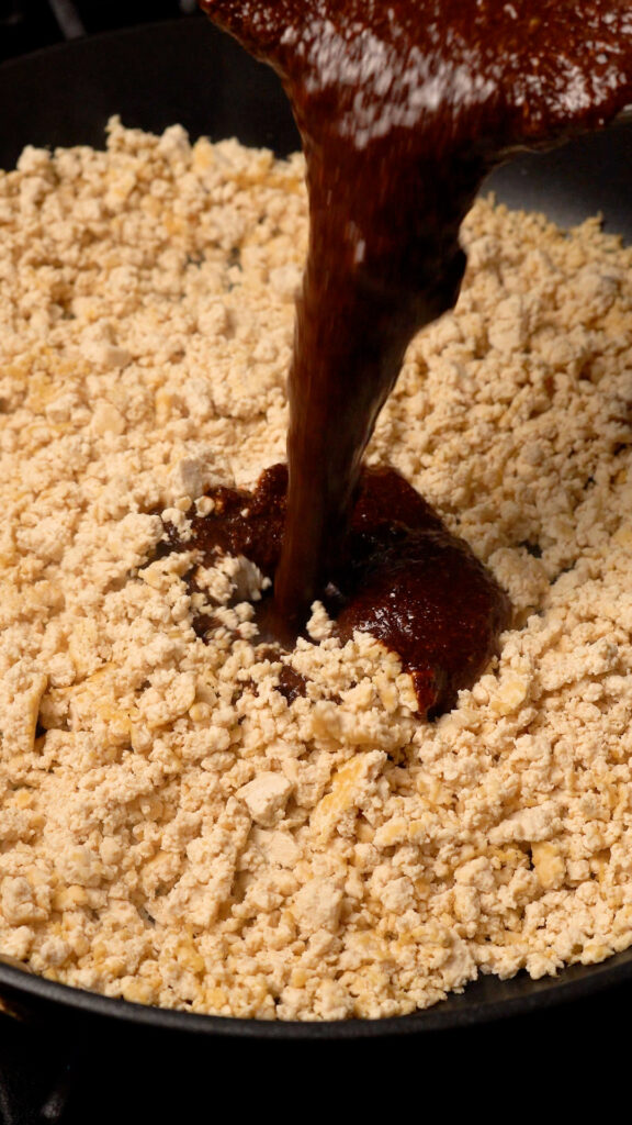 - Once the tofu is crumbled, make the marinade by simply whisking everything in a bowl.