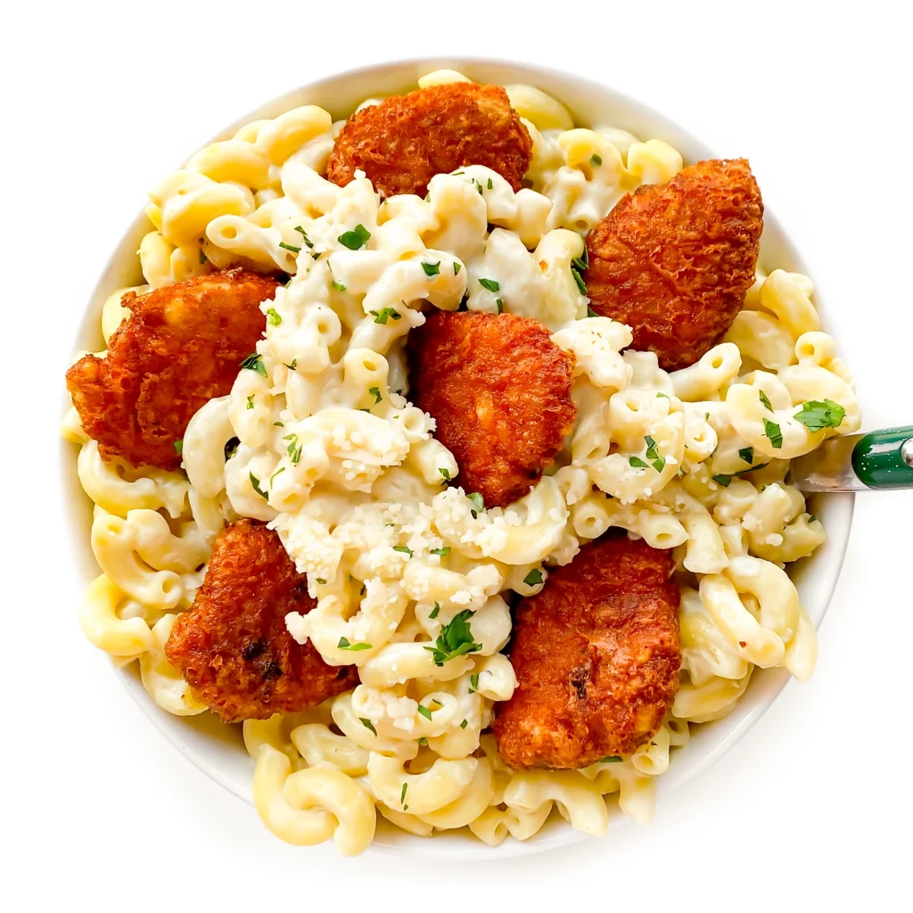 I also served this up with some Spicy Chick’n Nuggets, because if I’m doing Chick’n Alfredo, I’m doing it with some Spicy Nuggets!