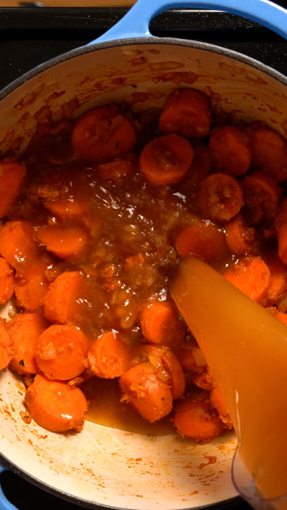 Not to mention, the red wine which imparts a lot of depth that contrasts perfectly with the vegan beef broth and aromatics.