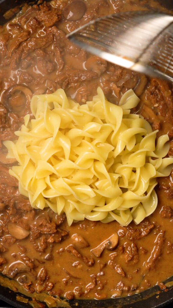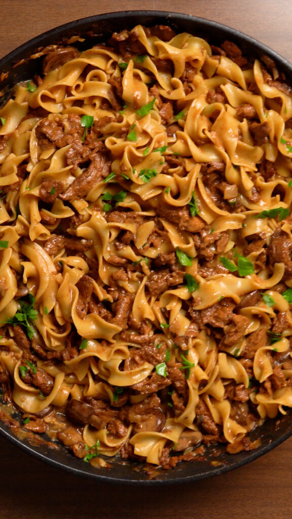 This Vegan Beef Stroganoff is just as beefy, creamy and delicious as the original! A plant-based spin on the classic dish!