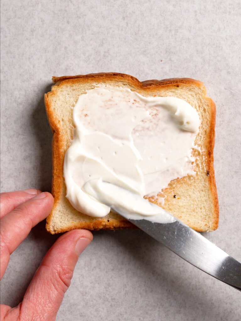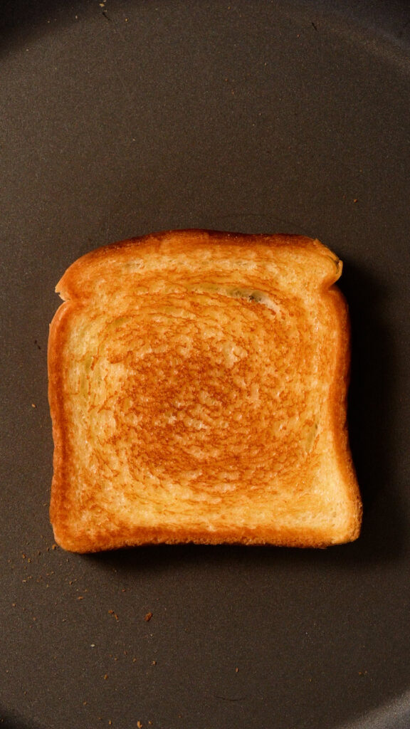 - Spread some Vegan Butter on each slice of bread. Add to a pan over medium heat and fry until golden brown. Flip to dry toast on the other side just for a minute or so.